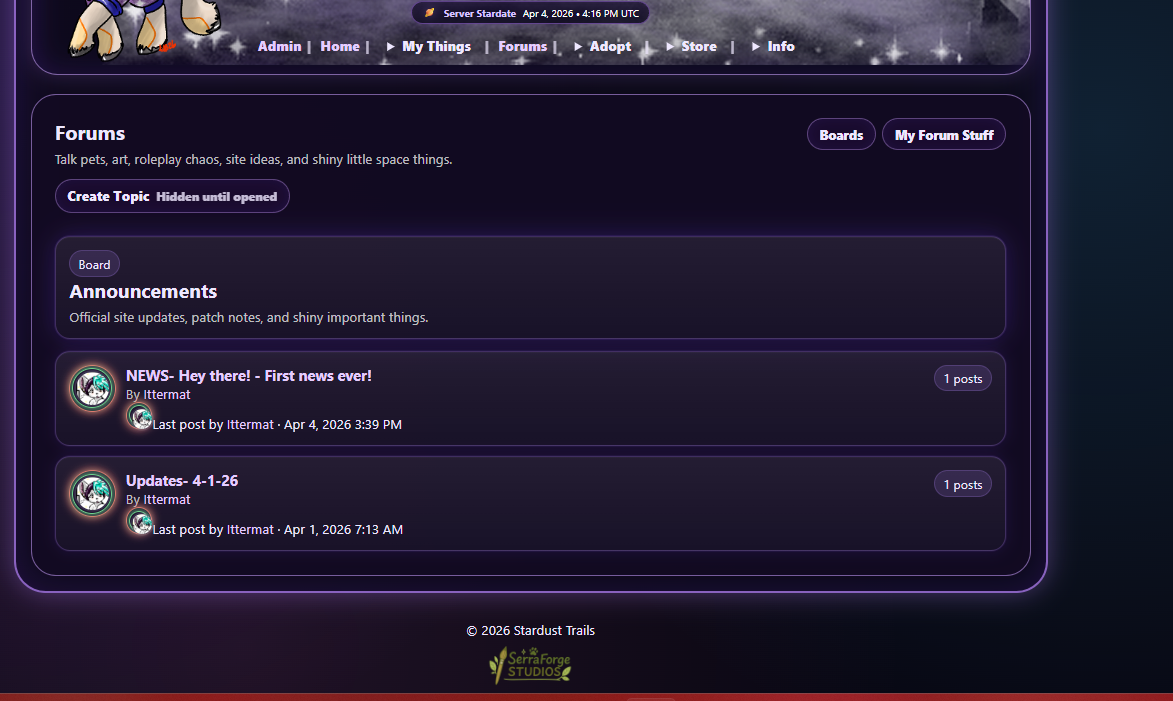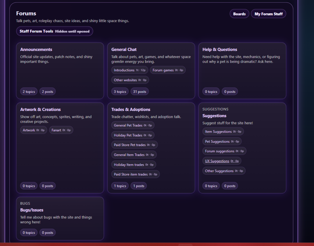 -did a bunch of work on the forums- formatting, fixing making it flow better- theres now pages and better looking easier to work with! I love it.