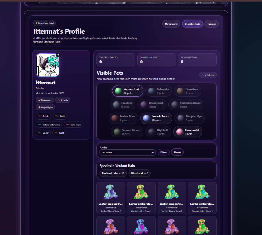 -Letting other users see user pets that arent in a trade- cuz you can only see pets in a trade folder in a trade. So now you can toggle if a user can see all your other pets too from your profile settings. Its defaulted to off.